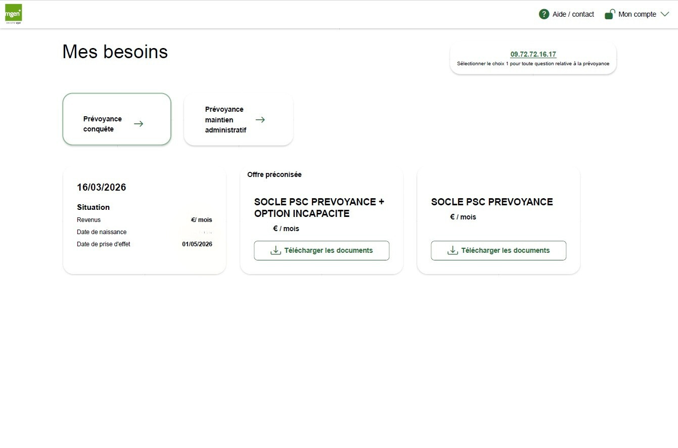Après avoir renseigné oralement votre revenu brut mensuel et choisi la formule de prévoyance, socle seul ou socle + option (pour une couverture totale), vous recevrez sur votre espace sécurisé MGEN une série de documents qu’il faut certifier avoir lu avant de téléverser les justificatifs demandés.