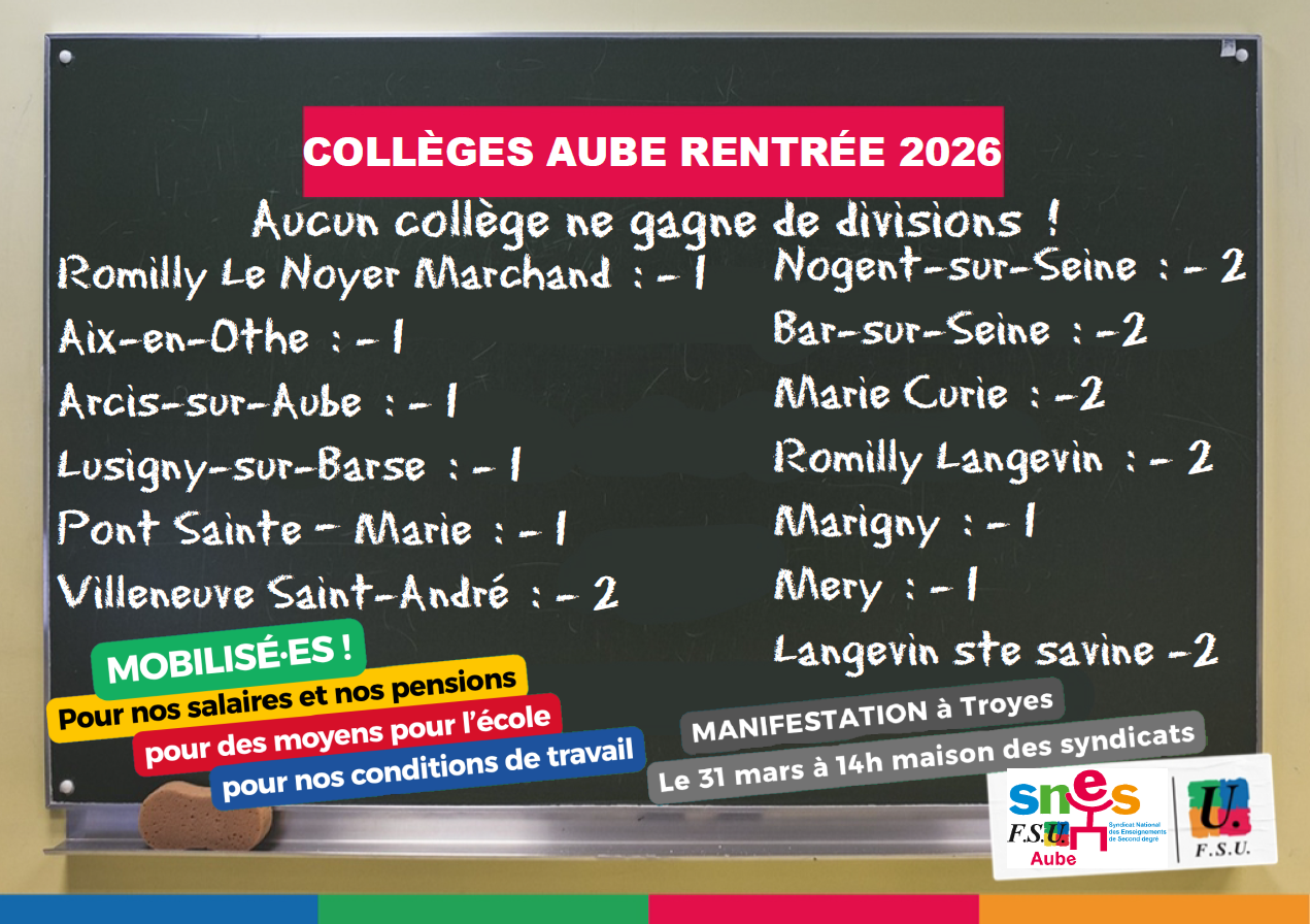 – Autres actions (agglo troyenne, Bar-sur-Aube, Romilly) les 7 et 8 mars 2026 : https://reims.snes.edu/8-mars-4004.html