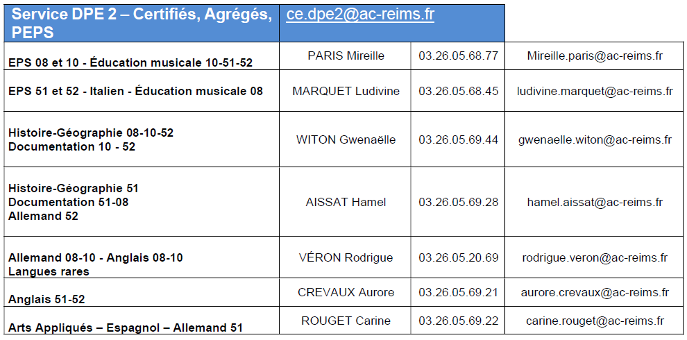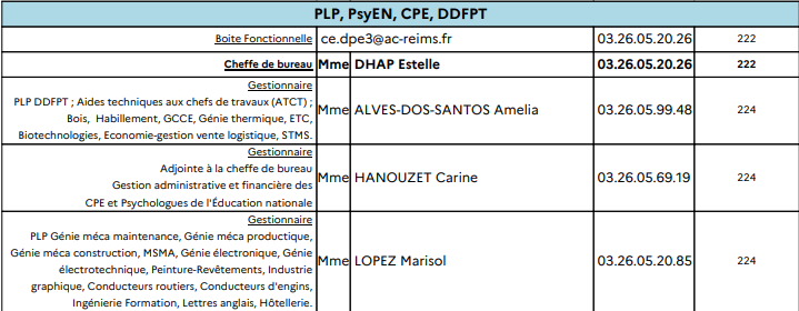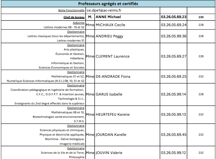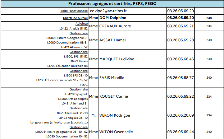 Une liste de postes disponible sur le site ac-reims : compléments à venir