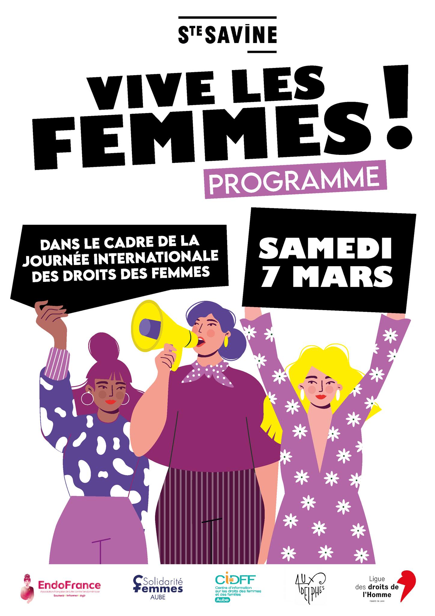 – Programme de la ville de Sainte-Savine le samedi 7 mars, ici : https://www.sainte-savine.fr/journee-internationale-des-droits-des-femmes/