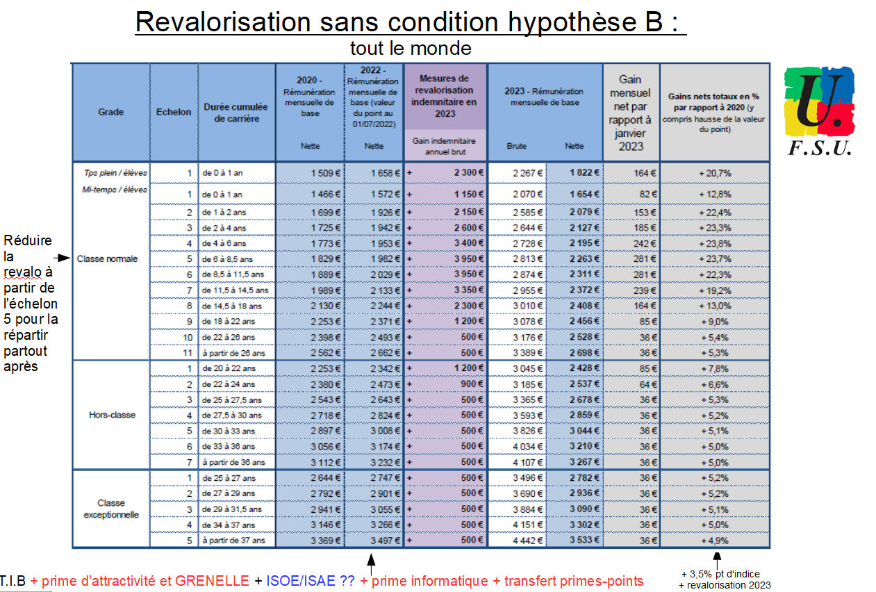 Au final, aucun des deux scénarios n’est privilégié. Une augmentation de l’ISOE pour tous et la revalorisation du scénaio A jusqu’à l’échelon 6 sont envisagées.
