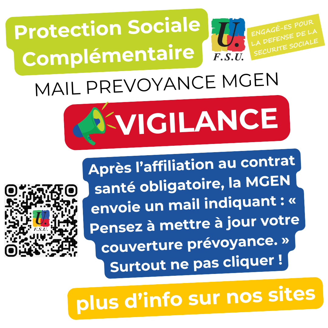 Vous êtes ici : Accueil Actualités / Action Actualité Mail Prévoyance MGEN : VIGILANCE !!! 12 décembre 2025 Actualités / Action Mail Prévoyance MGEN : VIGILANCE !!! Partager l'article sur Facebook Partager l'article sur Twitter Partager l'article via Addthis Imprimer l'article Envoyer l'article par email ARTICLE DU SNES-FSU