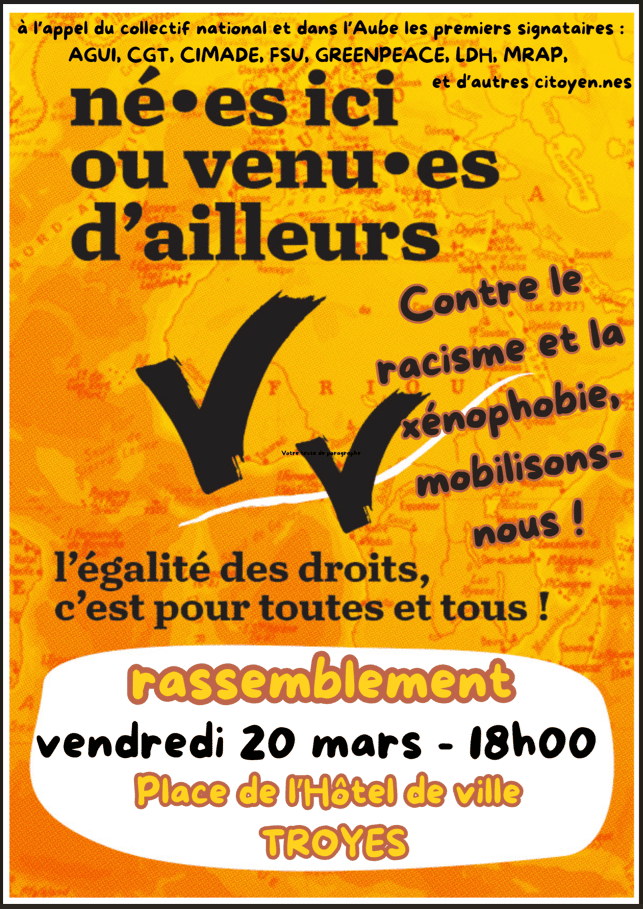 Rassemblement à Troyes à 15h devant la Préfecture.